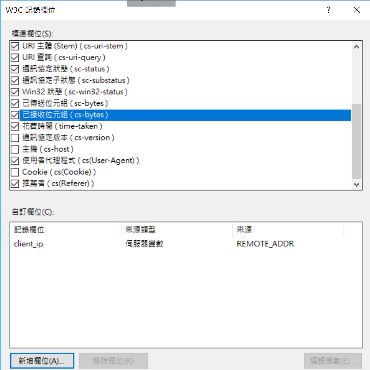 IIS 設定一學就會 – 調整 Log 欄位格式