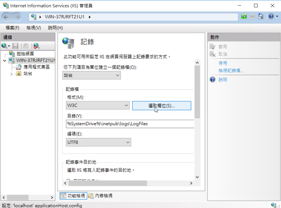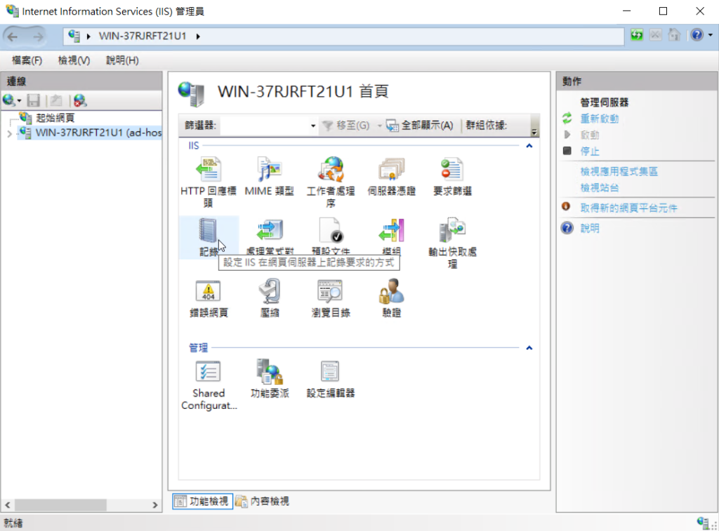首先開啟 [ IIS管理員 ] – 點選 [ 記錄 ] (Logging)