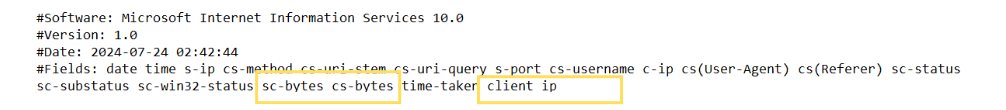 可以看到調整後的 log 多了剛才新增的 「sc-bytes」、「cs-bytes」、「client_ip」