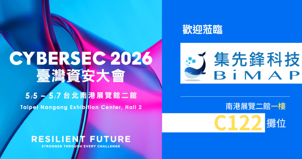 在 CYBERSEC 2026 韌性未來的浪潮中,集先鋒科技 (BiMAP) 重新定義「日誌專家」的價值。日誌不再只是沈睡的歷史記錄,而是企業 AI 防禦體系中至關重要的角色。本次資安大會我們將與攜手夥伴軍崴科技 一同參與臺灣資安年度盛事。